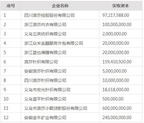 浪莎控股集團有限公司由自然人翁榮金、翁關(guān)榮、翁榮弟共同投資組建的有限責(zé)任公司,公司成立于1995年6月22日。公司地址位于浙江省義烏市經(jīng)發(fā)大道308號,法定代表人:翁榮金。經(jīng)義烏市工商行政管理局核準(zhǔn)登記注冊公司注冊資本:人民幣60,000.00萬元,公司經(jīng)營范圍:實業(yè)投資、投資管理咨詢(不含證券、期貨等金融業(yè)務(wù));襪子、內(nèi)衣、紗線的批發(fā)、零售;電子元器件的生產(chǎn)、銷售。(依法須經(jīng)批準(zhǔn)的項目,經(jīng)相關(guān)部門批準(zhǔn)后方可開展經(jīng)營活動。)