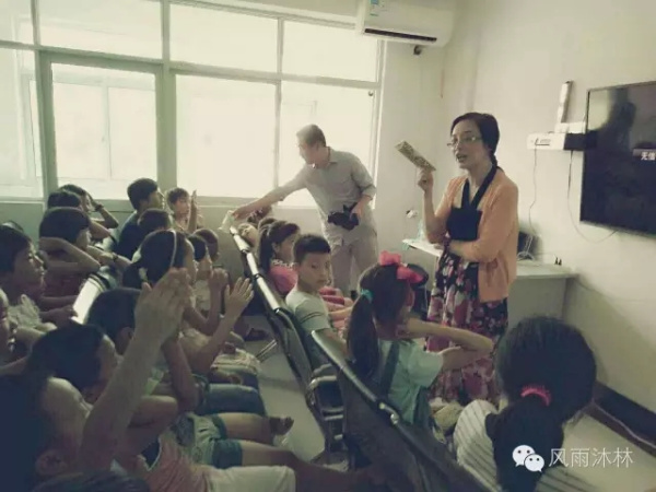 當(dāng)翁總裁和陳書記來到暑期活動室,小朋友們正在興致勃勃地看動畫片。黨員干部的到來引起了小朋友們的注意,看到翁總裁和陳書記一行的到來,小朋友們很是開心。