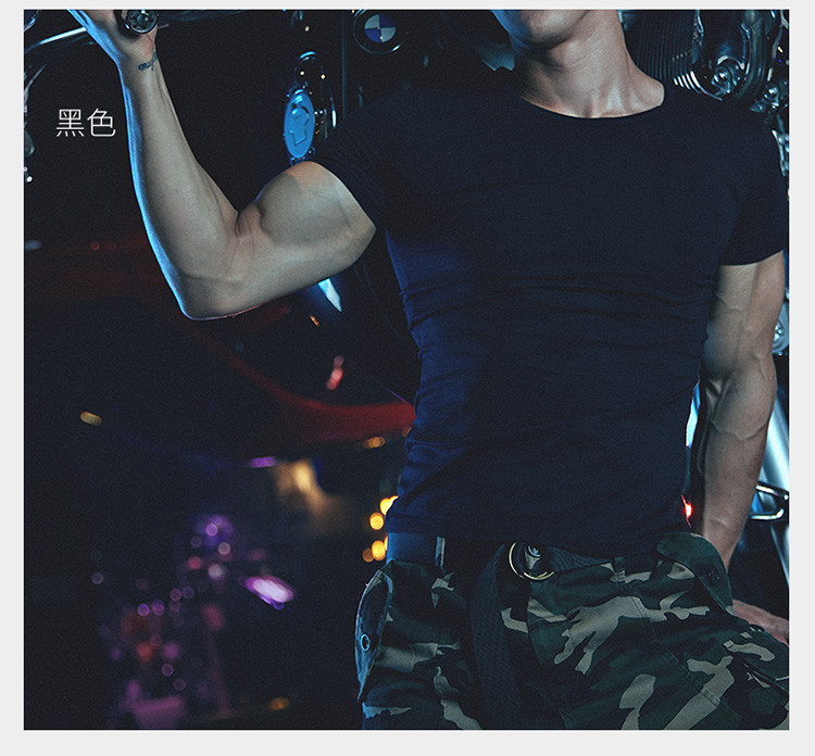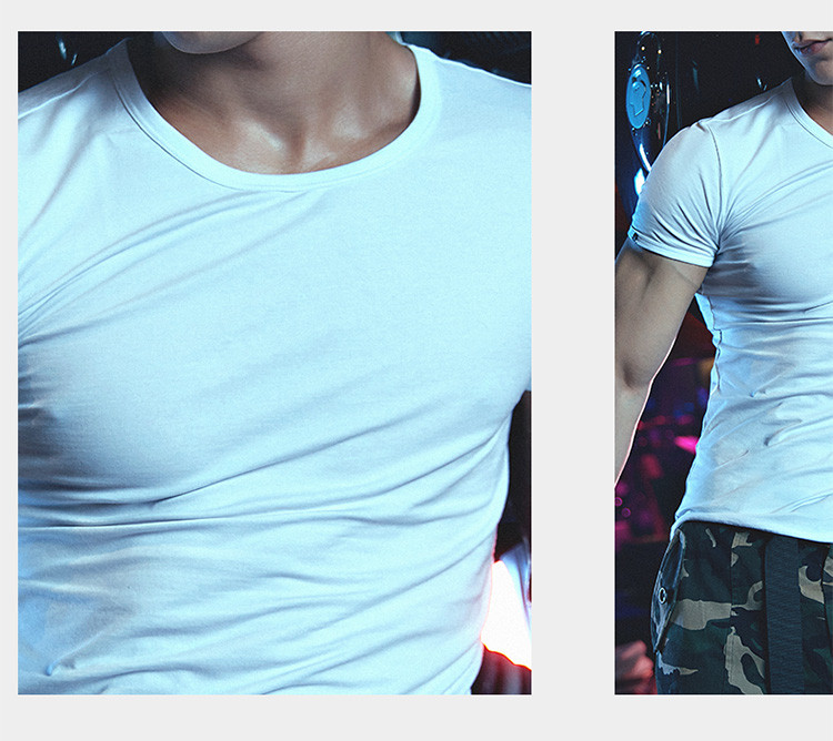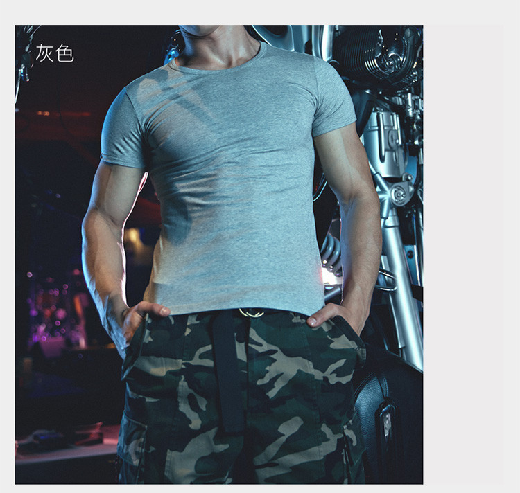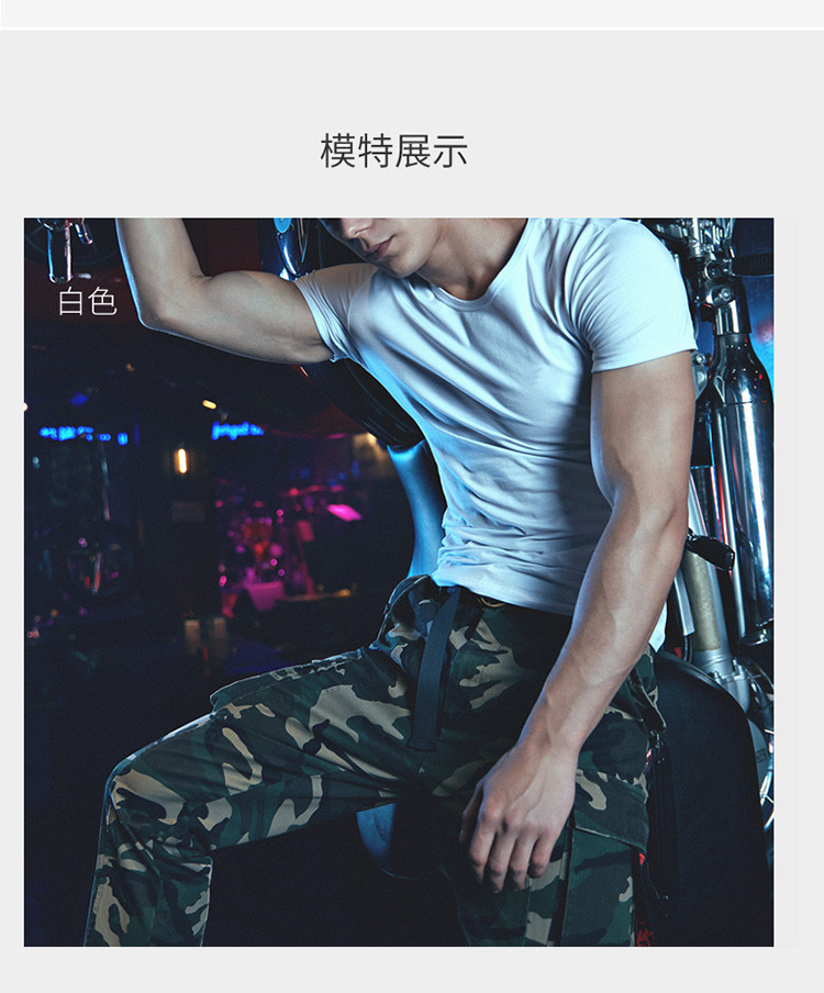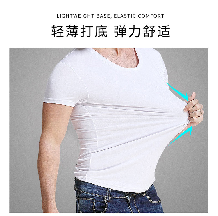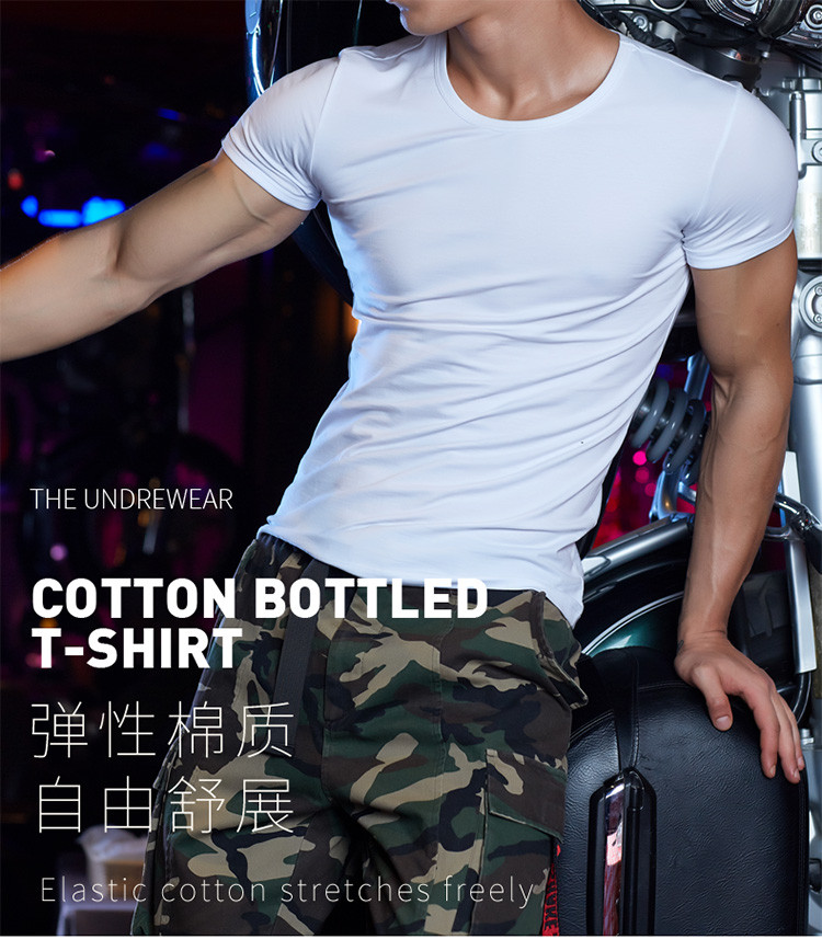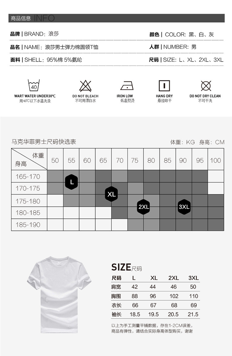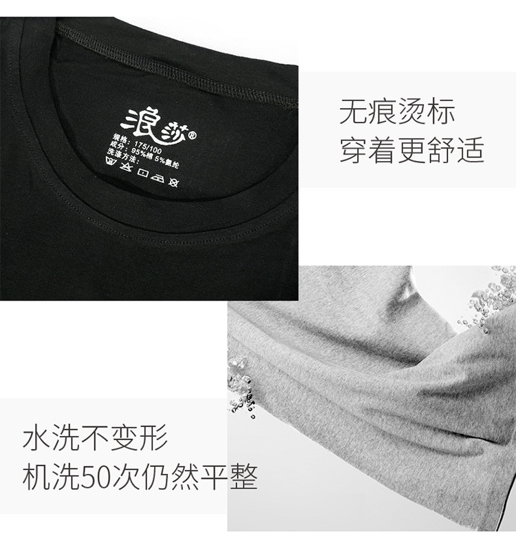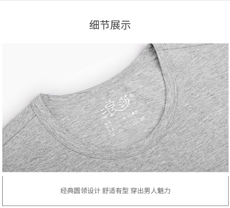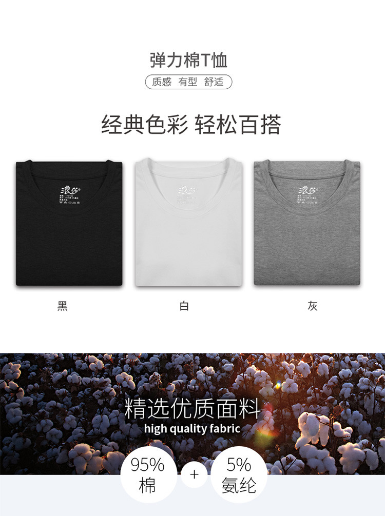 2件浪莎透氣春夏簡約男士彈力棉圓領(lǐng)運(yùn)動(dòng)T恤領(lǐng)休閑短袖