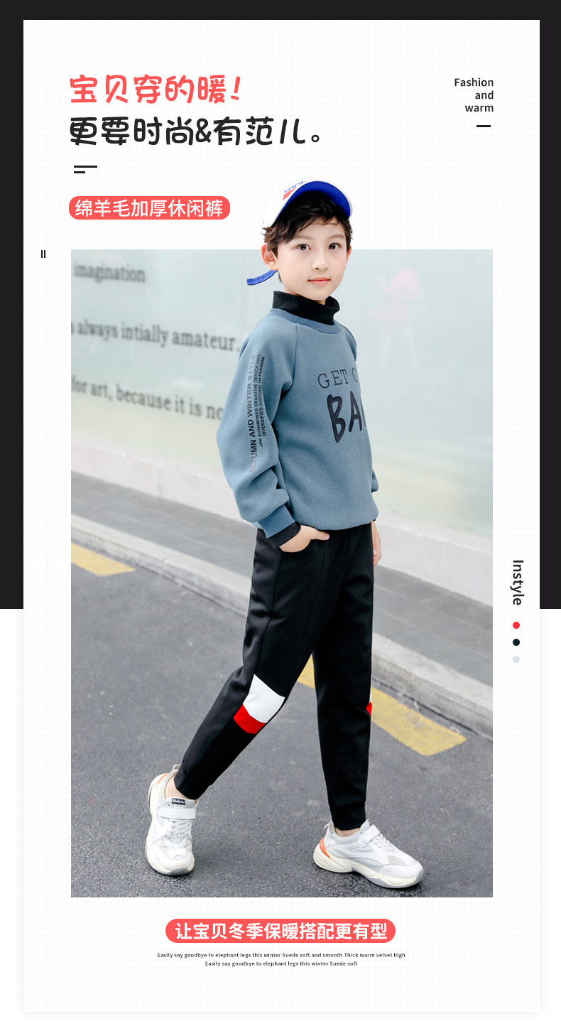 浪莎童裝男童羊毛外穿棉褲秋冬季加絨加厚中大童寶寶保暖運(yùn)動(dòng)褲子