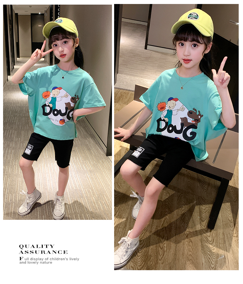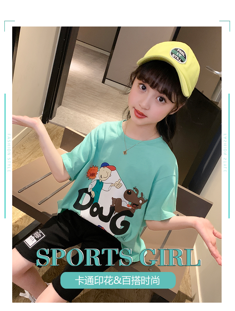 浪莎女童夏裝2021新款網紅洋氣兒童中大童短袖T恤女孩童裝夏季潮