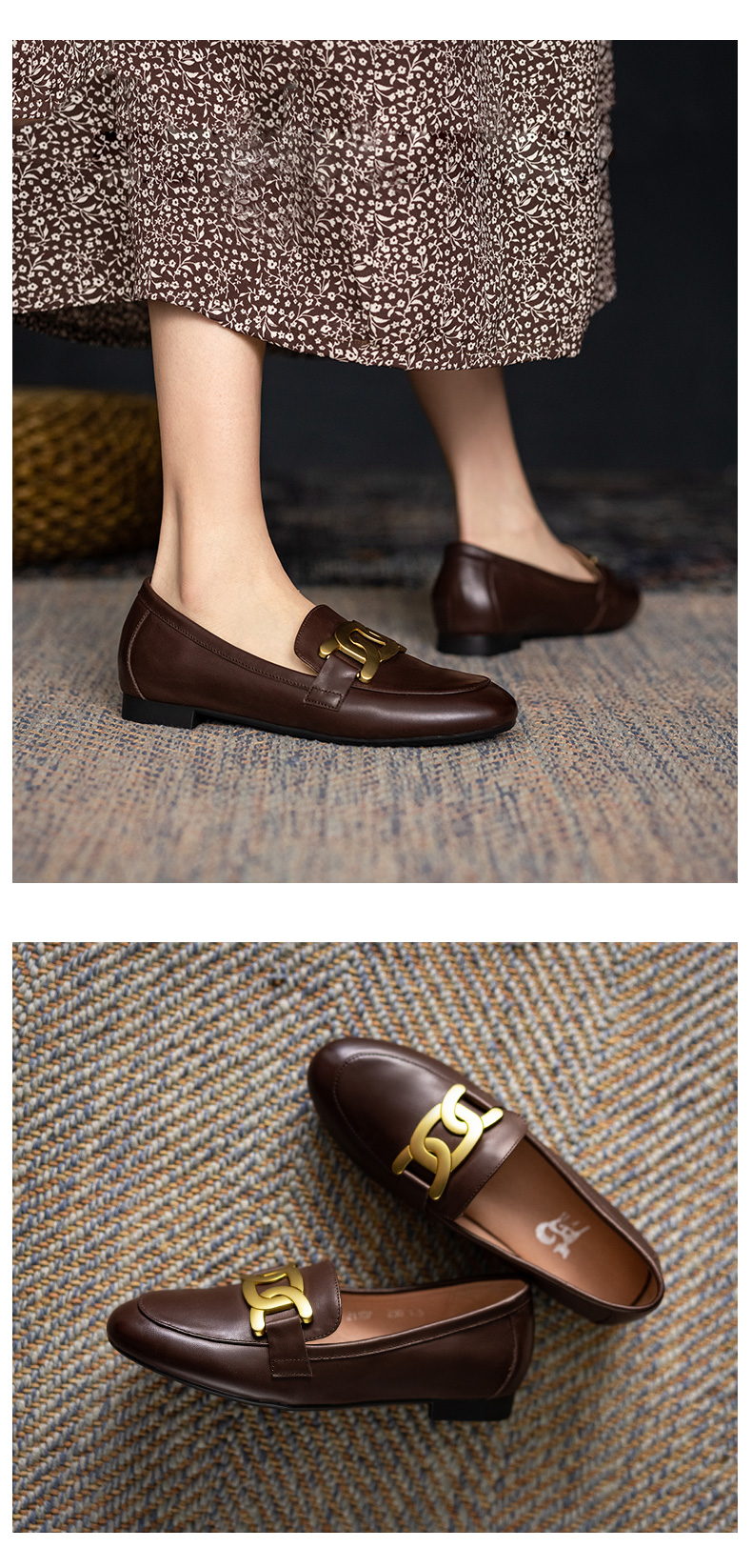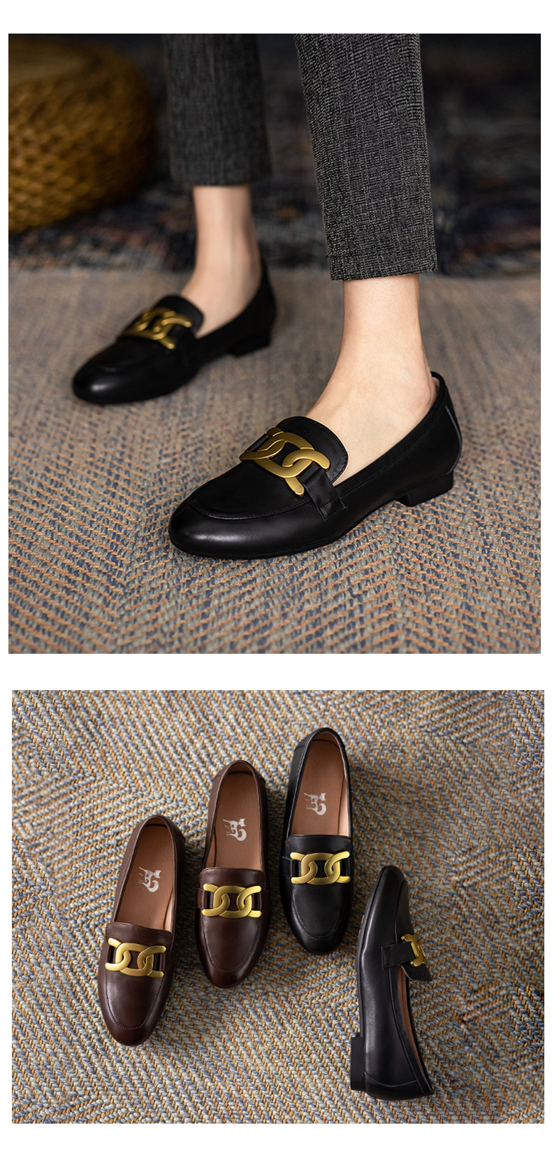 樂福鞋女真皮2021爆款鞋子春英倫風圓頭單鞋一腳蹬黑色平底小皮鞋