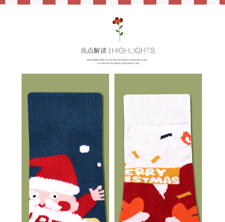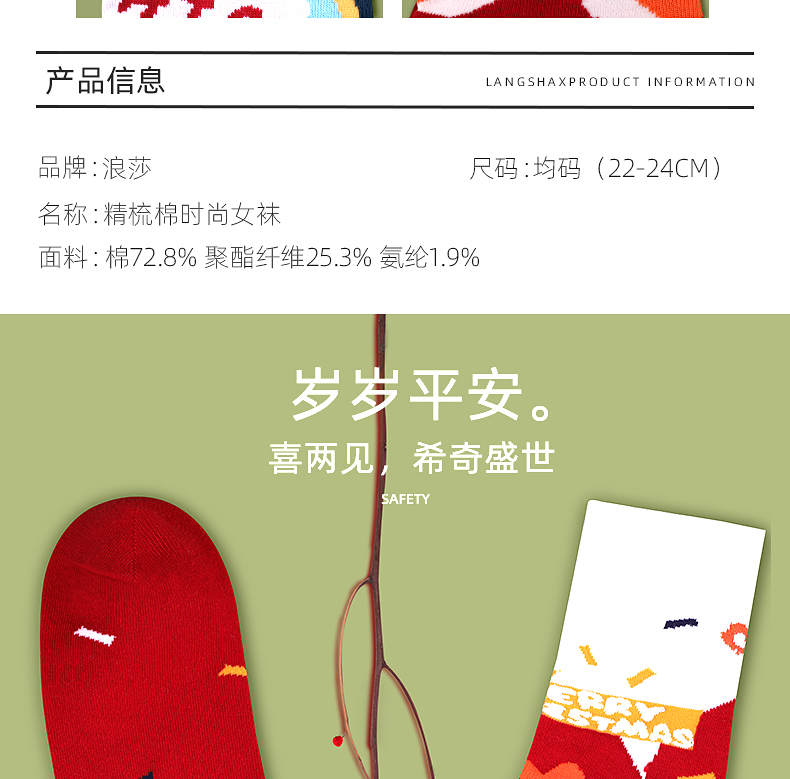 浪莎圣誕襪子女中筒襪秋冬季可愛本命年紅襪子圣誕節禮盒加厚棉襪
