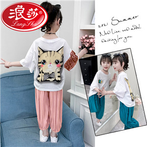 浪莎女童夏裝2021新款網(wǎng)紅洋氣兒童中大童短袖T恤女孩童裝夏季潮